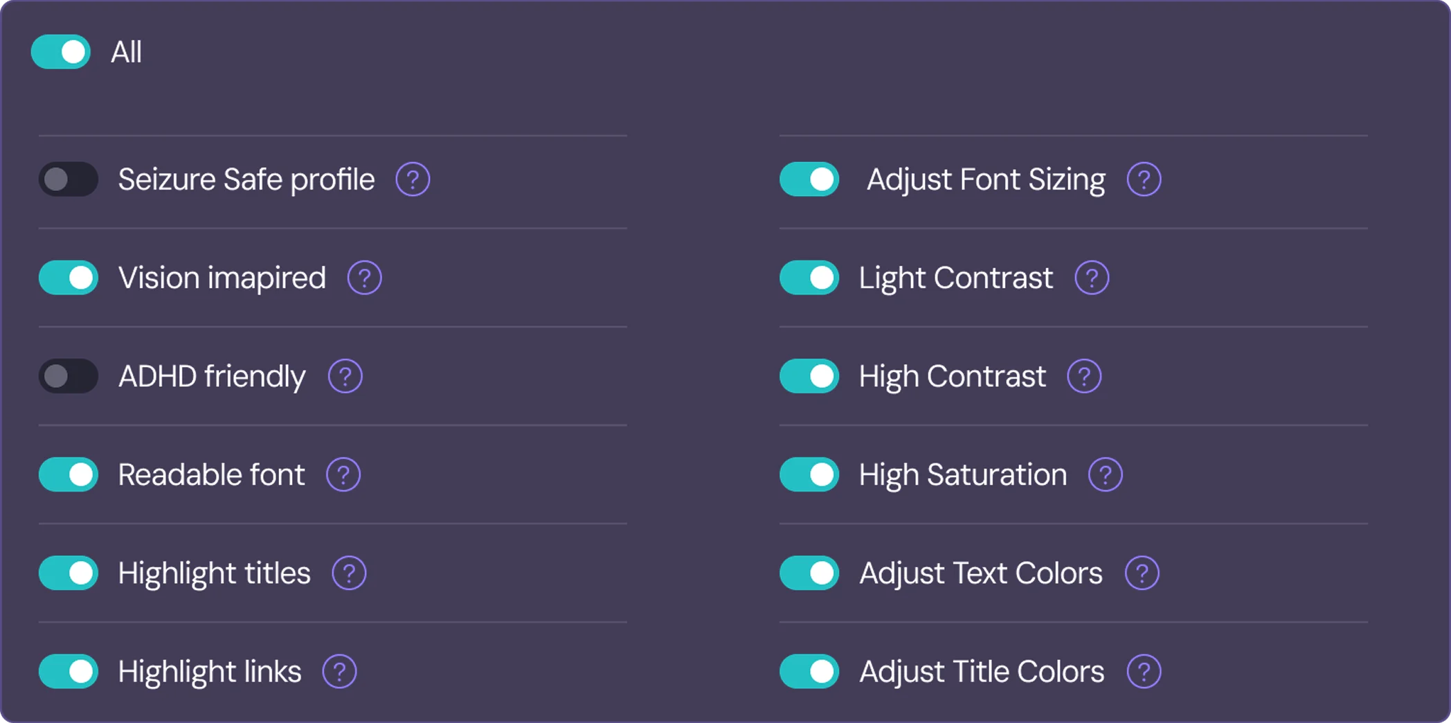 AccessBit integrates directly with Webflow to make accessibility easy and compliant. Its smart widget allows users to adjust text size, contrast, color modes, and more, all ensuring a more inclusive experience. By giving users control over how they interact with your website, AccessBit helps ensure your Webflow site meets ADA and WCAG 2.1 accessibility standards.