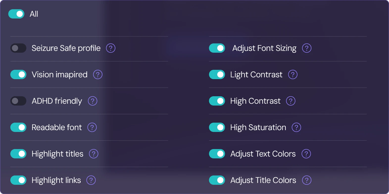 AccessBit integrates directly with Webflow to make accessibility easy and compliant. Its smart widget allows users to adjust text size, contrast, color modes, and more, all ensuring a more inclusive experience. By giving users control over how they interact with your website, AccessBit helps ensure your Webflow site meets ADA and WCAG 2.1 accessibility standards.