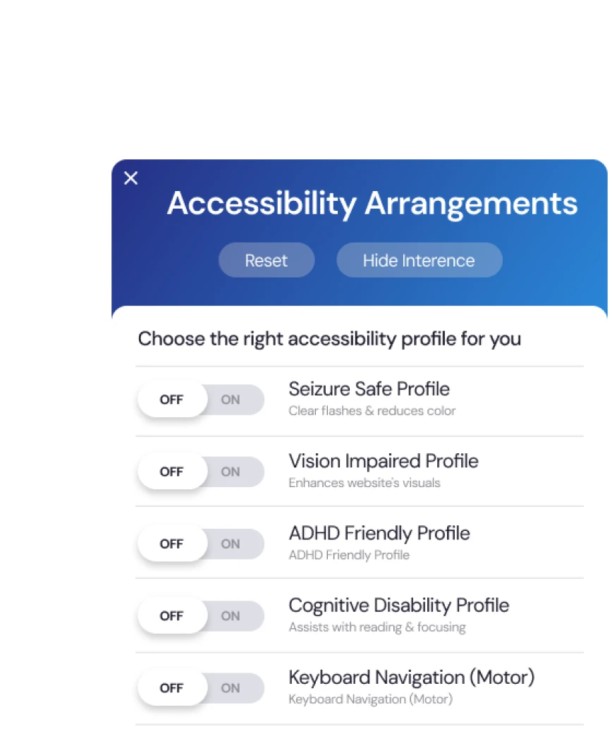 AccessBit helps your website meet WCAG 2.1 and ADA compliance requirements through its customizable accessibility widget. This widget enables users to adjust key accessibility features such as font size, contrast modes, screen reader compatibility, and more. By allowing users to personalize their browsing experience, AccessBit supports inclusivity and helps your site align with accessibility regulations.